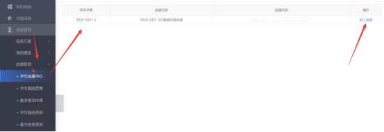 步骤2. 点击【进入选课】,进入选课课程页面。