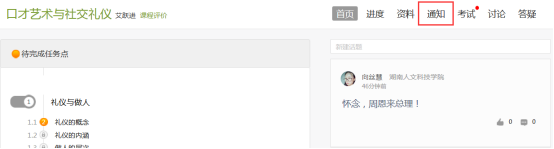 在学习页面的导航栏点击通知,即可查看最新的通知。