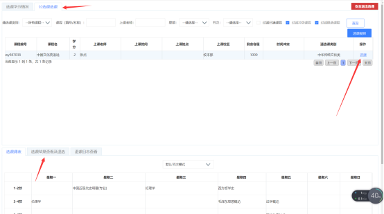 步骤3. 找到需要选的课程,点击【选课】,即可完成选课操作,如下图学生选课页面。