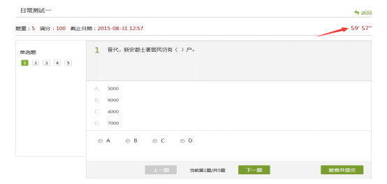B、进入考试,界面如图所示,由老师设置考试时长以及考试题型。