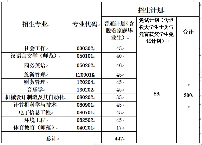 2022 年,太阳成官网专升本总招生计划500人(含免试计划53人),具体招生专业与招生计划数详见下表,其中免试计划单列,最终招生计划以湖南省普通高等学校专升本信息管理平台公布为准。