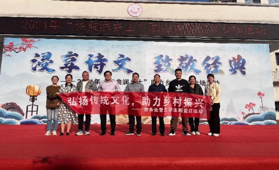 为贯彻落实习近平总书记关于语言文字工作的重要论述和全国语言文字工作会议精神,深入实施推普助力乡村振兴计划,促进中华经典文化在乡村浸润传播,10月31日,44118太阳成城集团教务处党支部联合涟源市金石镇芙蓉学校开展“弘扬传统文化,助力乡村振兴——经典润乡土”诵读活动。副校长、党委委员、省级语言文字基地推广负责人刘铁峰应邀出席了主题党日活动,教务处全体支委成员及部分党员参加了主题党日活动。