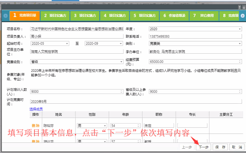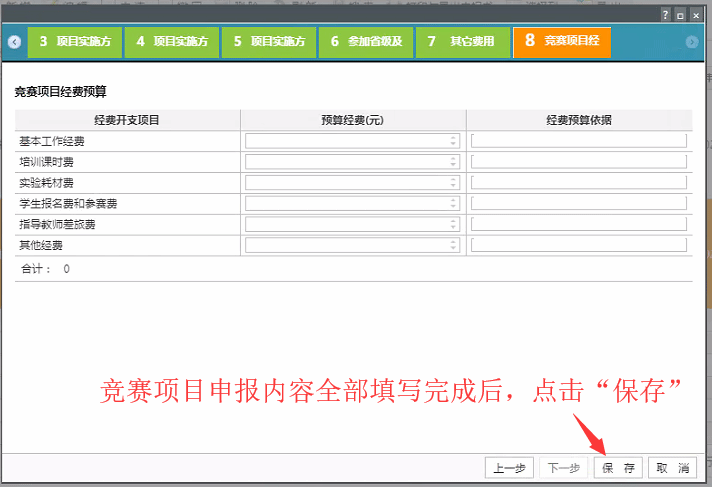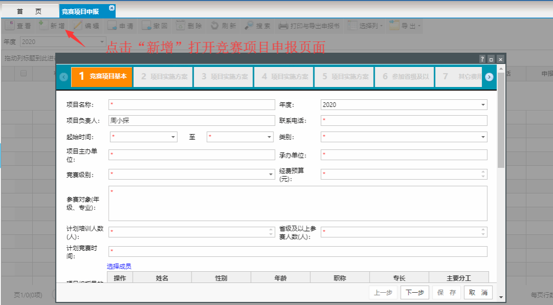 四、项目负责人要在实验室管理系统中填报《学科竞赛项目申报书》,教务处通过网上对项目进行审核,具体操作方法见附件3。