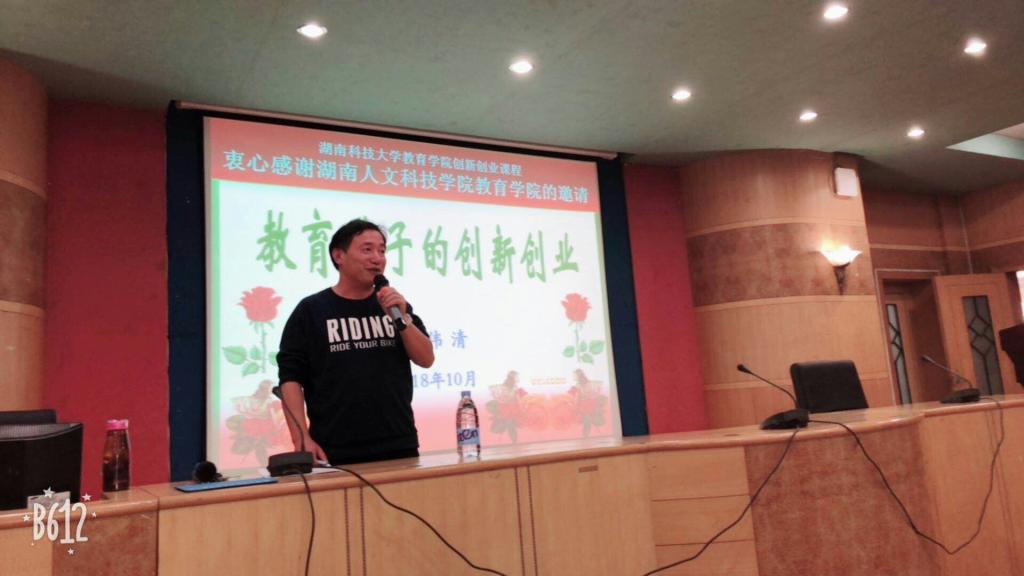 20181026日下午14:,30——16:30湖南科技大学教育学院教授,硕士生导师,湖南科技大学教育资源研究所所长;湖南省大学生创新创业导师王伟清教授应邀莅临太阳成官网教育学院,在学校养根楼多媒体报告厅为教育学院师生做讲座,主题为《教育学子的创新创业》。教育学院约200位在校学生聆听了讲座,部分教师也参加了讲座。