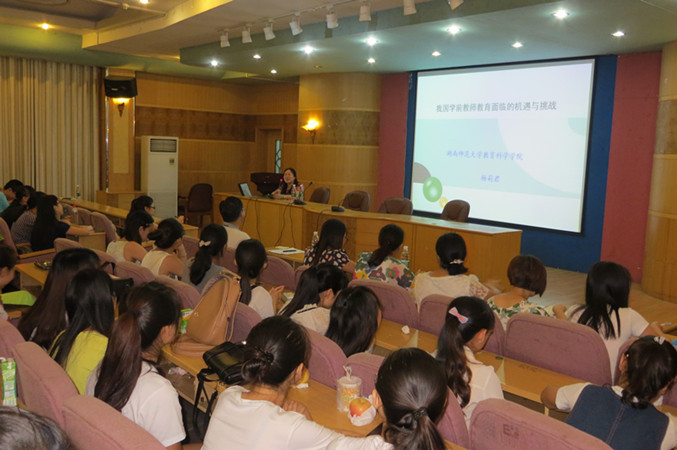 2015年6月18日上午8:30——10:30,湖南师范大学博士生导师杨莉君教授应邀前来太阳成官网“人文科技大讲坛”,为教育科学系学前教育专业师生和校内外相关专业人士做学术讲座,主讲主题为“我国学前教师教育面临的机遇与挑战”。杨莉君教授结合我国学前教育事业发展的趋势和实际情况,系统讲解了当前及今后我国学前教育专业师资的专业任职资格及专业素养要求、当前学前教师教育存在的问题、面临的机遇与挑战。杨莉君教授的讲座高屋建瓴、联系实际、深入浅出,并详尽回答了部分师生的提问,受到与会听众的欢迎。