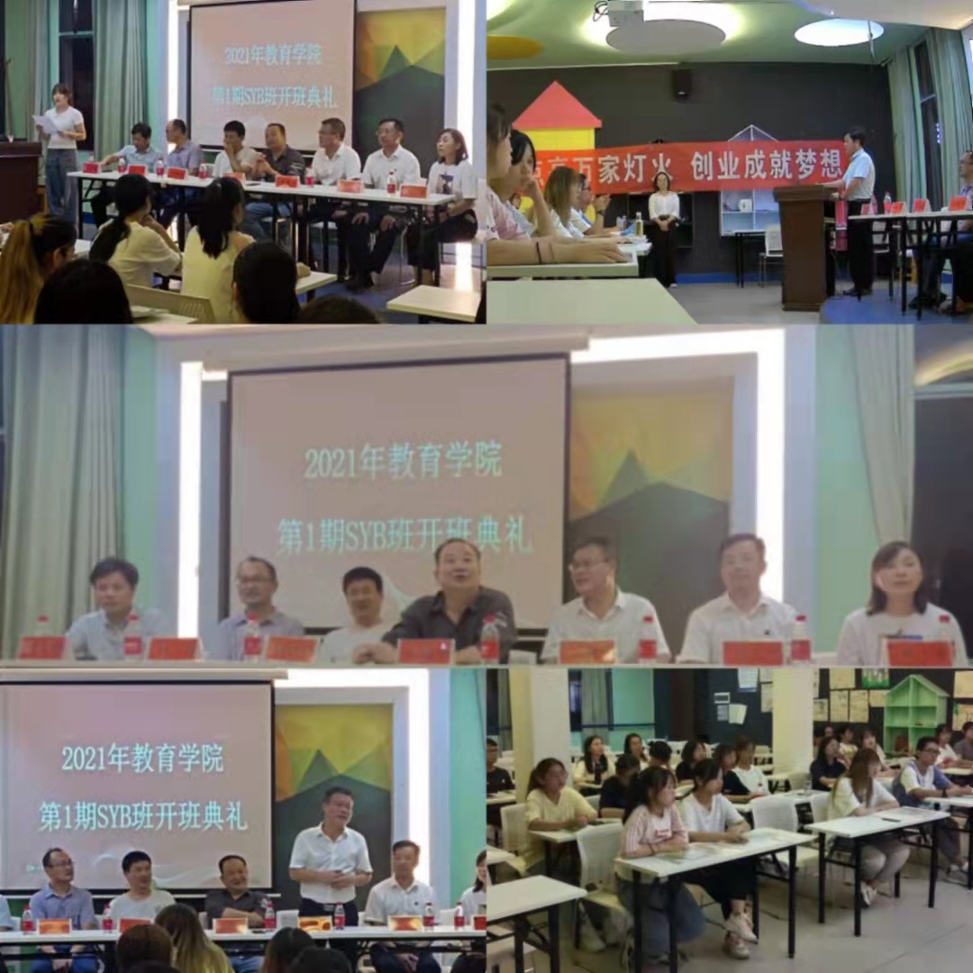 9月13日晚,2021年教育学院第1期SYB班开班典礼在甘澍楼601举行。开班仪式由本期SYB班班主任黎任水主持,创新创业学院原院长、湖南省创业指导专家彭晓华,创新创业学院副院长刘盛愚,继续教育学院副院长钟勇,SYB资深讲师、校友办副主任曾志峰,教育学院党总支书记邹坤、院长刘超良、党总支副书记田密以及全班学员参加开班典礼。