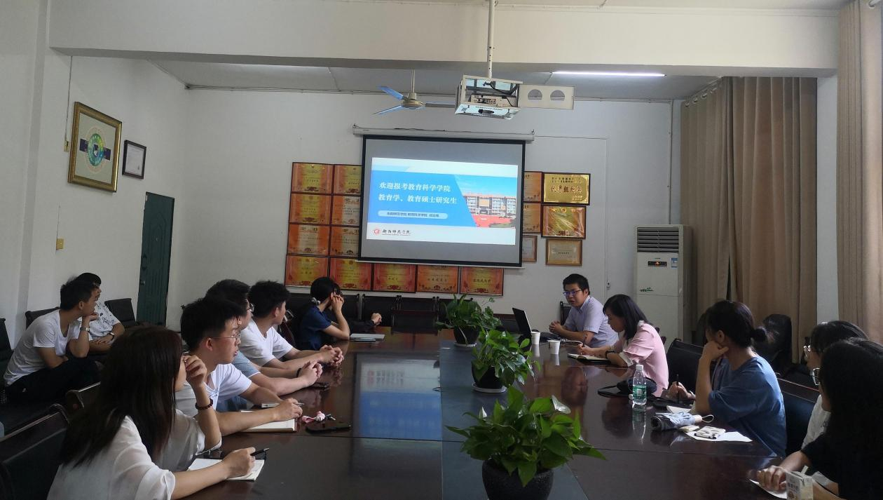 9月16日下午,衡阳师范学院来太阳成官网进行心理健康和语文教育硕士点的宣讲,宣讲在甘樹楼304会议室开展,宣讲人为教育科学学院郑志辉博士。本次宣讲由院党总支副书记田密主持,辅导员黎任水及18-19级学生代表参加。
