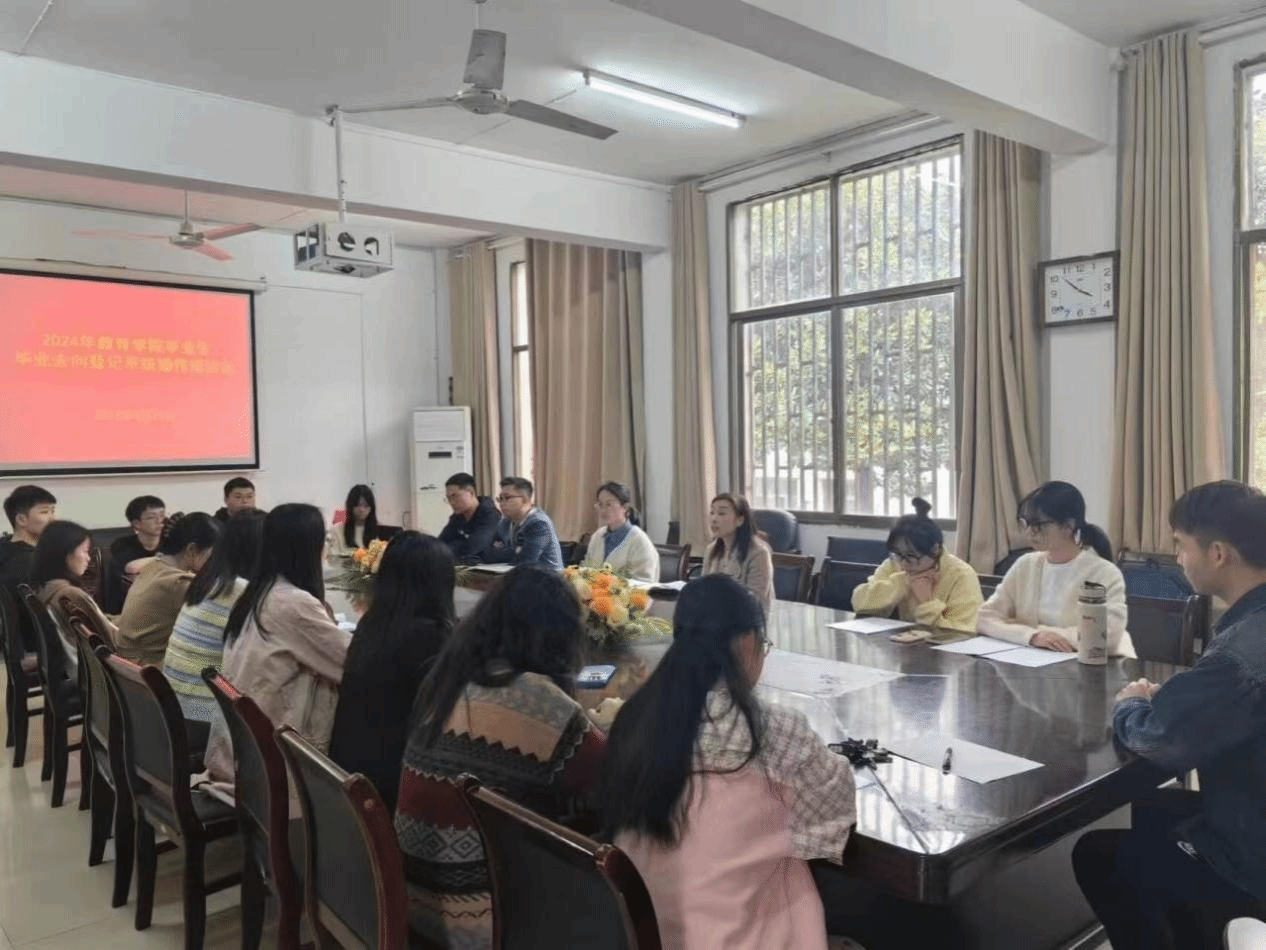 4月11日下午,教育学院召开毕业生毕业去向登记系统培训会暨征兵工作推进会。院党总支副书记田密、分管21级辅导员梁鑫、分管20级辅导员兼征兵专干陈福、就业专干肖阳及20级各班班长和学生干部代表参加会议。