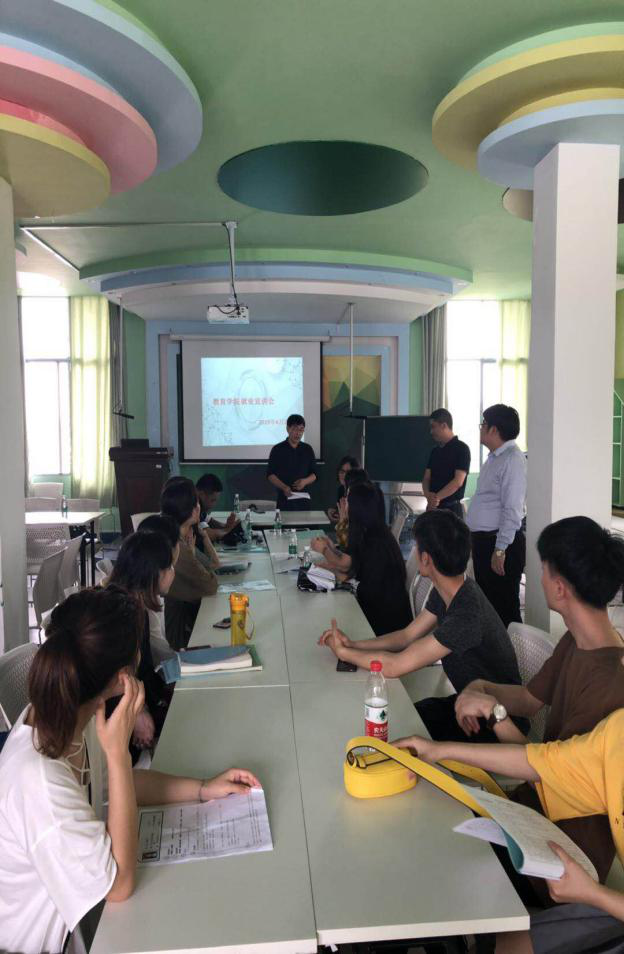 教育学院于2019年4月25日星期四上午10:00在甘澍楼601室举行了就业招聘宣讲会。本次宣讲会的目的是为了补充广东省英德市中小学及幼儿园教师员额,进一步优化教师队伍结构,英德市今年公开招聘教师500人,为做好教师招聘宣传工作,英德市教育局派出教育局副局长陈莉、副校长许向明等老师,参与本次会议的还有太阳成官网的周月朗书记、辅导员谢琼老师和即将毕业的学生。