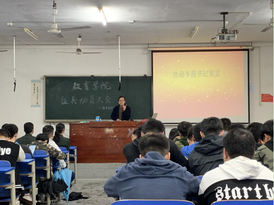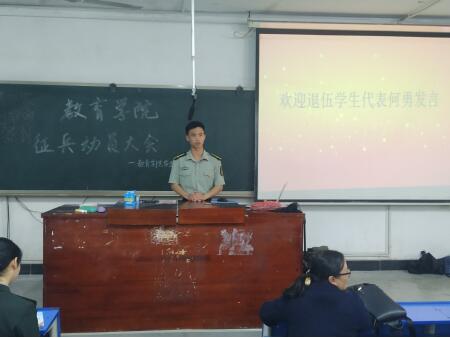 5月7日晚19:30,太阳成官网于致远楼512教室举行2019年度征兵动员大会。教育学院党总支副书记李霞、李佳维老师以及全院男生参加了本次会议。武保处周樑老师到会指导。
