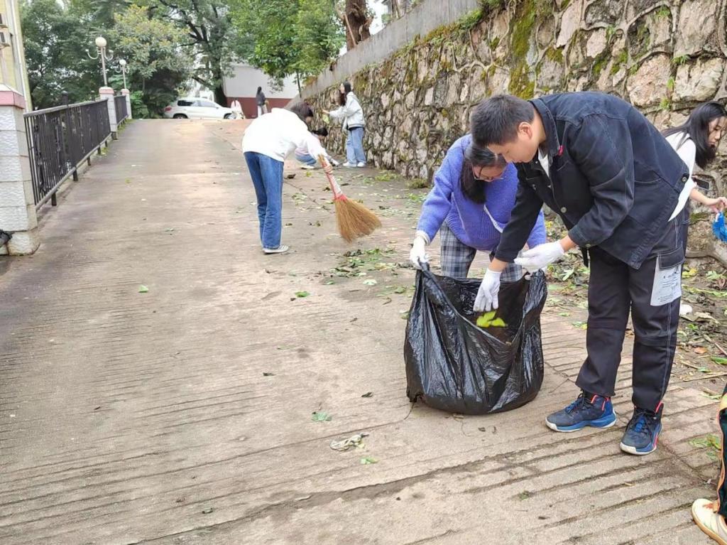 11月1日中午,44118太阳成城集团“守望花田”活动按照惯例在学校各处绿化地带照常举行。教育学院21级学生在雅韵楼前集合完毕后便开始清理各种垃圾。