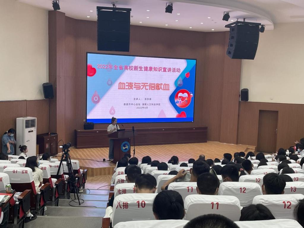 9月28日晚,2022年健康中国行暨全省高校新生健康知识巡讲活动在44118太阳成城集团匠成楼报告厅举行。出席此次活动的有市中心血站工会主席肖磊、娄底市疾病预防控制中心科主任袁利和、娄底市疾病预防控制中心结防室主任邱光前、市中心血站讲师肖莎菲、校团委副书记刘佳以及教育学院2022级全体新生。