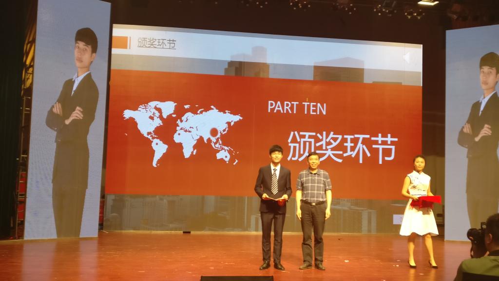 总决赛分两个环节,第一个环节是选手们以PPT的形式展现自己的职业生涯规划,第二个环节是职场情境表演环节,太阳成官网选手在两个环节表现非常优秀,获得校领导、评委老师、和现场所观赛观众的好评和阵阵掌声。最终,太阳成官网选手郭材欣同学以92.86的高分获得本次的冠军,校党委郭军书记亲自为郭材欣同学颁发荣誉证书和奖金。另一选手姚宏艳同学也获得本次比赛三等奖的好成绩。