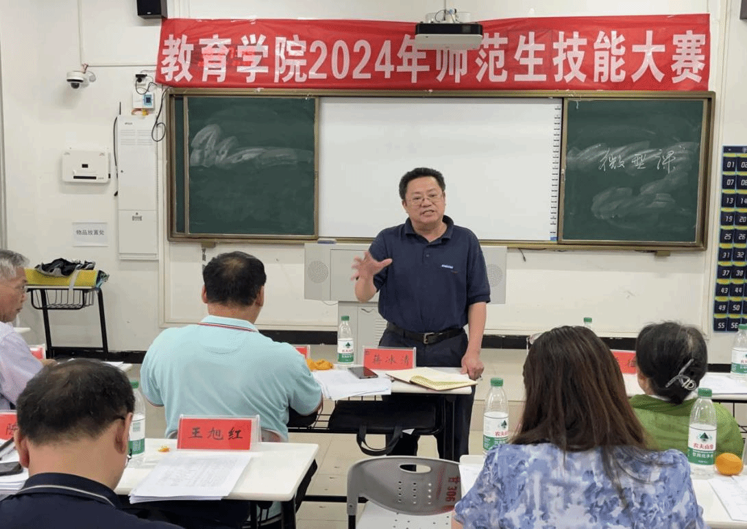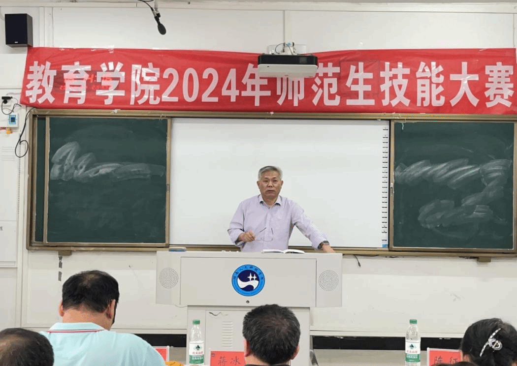 6月2日,教育学院2024年师范生技能大赛暨第十六届师坛秀活动在甘澍楼306举行。活动旨在提高师范生教学技能,为专业认证的顺利推进夯实基础。担任此次活动的评委有校教学督导杨正德、周兰桂、陈征南,教育学院蒋冰清、田密、刘黎明以及各教研室主任与教师代表。