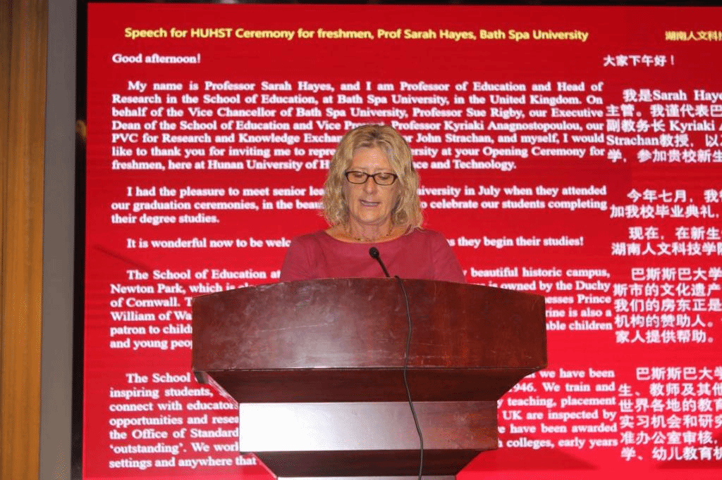 (巴斯斯巴大学教育学院教授Sarah Louise Hayes讲话)