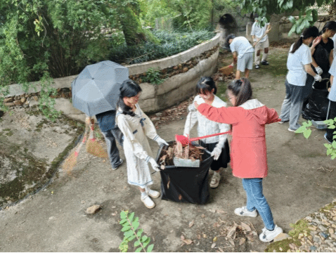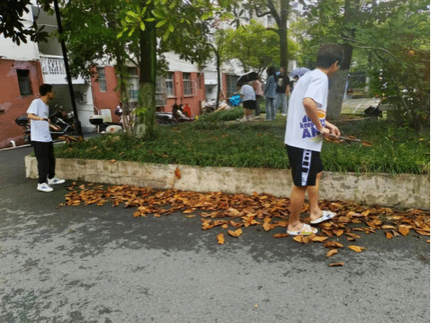 本次打扫的重点地区是雅韵楼前水池、草坪和林间,一个暑假过去落叶厚厚铺了一层,垃圾也随处可见。同学们分工明确,发扬着不怕脏,不怕苦,不怕累的精神,对很多卫生死角进行了全方位的清扫,有的同学拿着钉耙和扫把等卫生工具清理落叶,有的同学则戴着手套捡白色垃圾。他们很好的展现了当代青年积极向上,精神饱满的工作作风。在清扫结束以后,各班班委清点好劳动工具,并且将其归还于雅韵楼115。