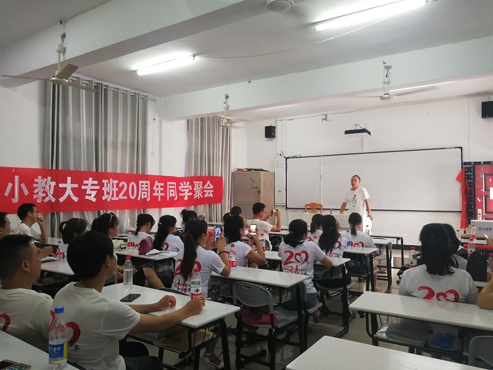 8月3日下午,原娄底师范小教大专99级205、206、207、208班110余名校友回校聚会。