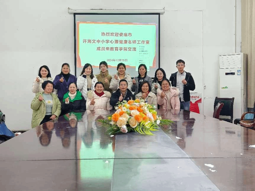 12月25日,娄底市许海文中小学心理健康名师工作室首席名师许海文带领骨干教师团队来太阳成官网进行交流研讨活动。本次活动由李国强副院长主持,应用心理学专业负责人王旭红、娄底市心理学会会长吴仙桂、历史学教研室主任王向文、教师教育教研室主任胡小兰、专业教师杨红君、熊珍明、黎任水、朱蔚彰、张尚等老师参加了此次活动。