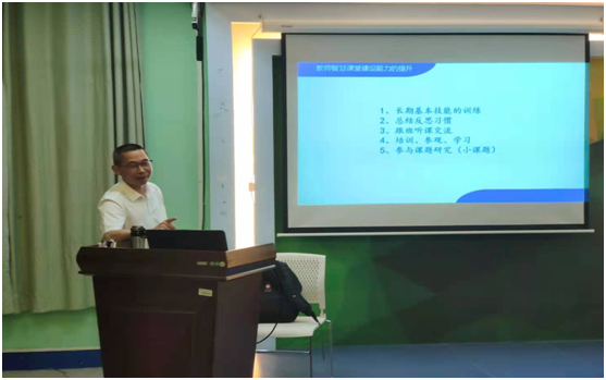 讲座围绕“到底什么是教育?”、作为教师应该如何有效教育教学、如何建设智慧课堂三大问题展开。详细的阐述了教书育人的原则并分享了教育教学的模式方法。他指出,要用心做教育,要有耐心,细心,爱心,恒心,按规律做细做实常规工作,培养能适应未来社会全面发展的人。他强调,教育是一个优雅的过程,是一个缓慢的过程,不能有太多的功利性,不能有太多的个人想法,它最终只是沉淀在学生身上,要求将学生的发展放在首位。