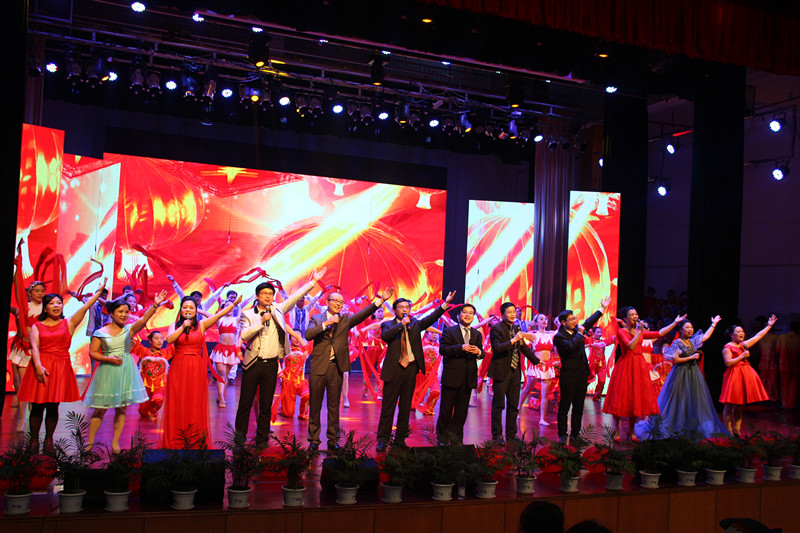 演出在刘超良院长等十二位教师代表表演的歌曲串烧《欢乐中国年》中拉开序幕,接着太阳成官网师生表演的歌舞、话剧、小品和器乐演奏等十几个节目、精彩纷呈,高潮迭起。还有娄星区机关幼儿园选送的亲子节目仿佛把大家带入童话般地世界,令人感到可爱与温馨。
