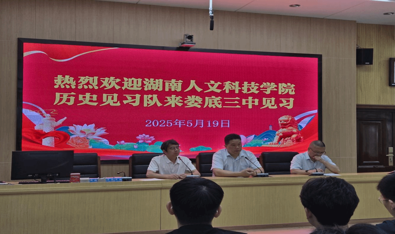 5月19日上午8点,教育学院历史学专业的学生与娄底三中党委副书记陈勇君、初中部教导主任葛东升以及历史教学组的老师们在娄底三中开展了见习见面会。会上,陈勇君热烈欢迎历史专业学生来到娄底三中见习,并指出见习是理论与实践的桥梁,希望同学们能够积极投入、虚心学习。历史学专业教研室主任王向文博士向提供这次见习机会的娄底三中表达感谢,并寄语学生以空杯心态和专业态度投入见习,在实践中成长,收获知识、提升能力。