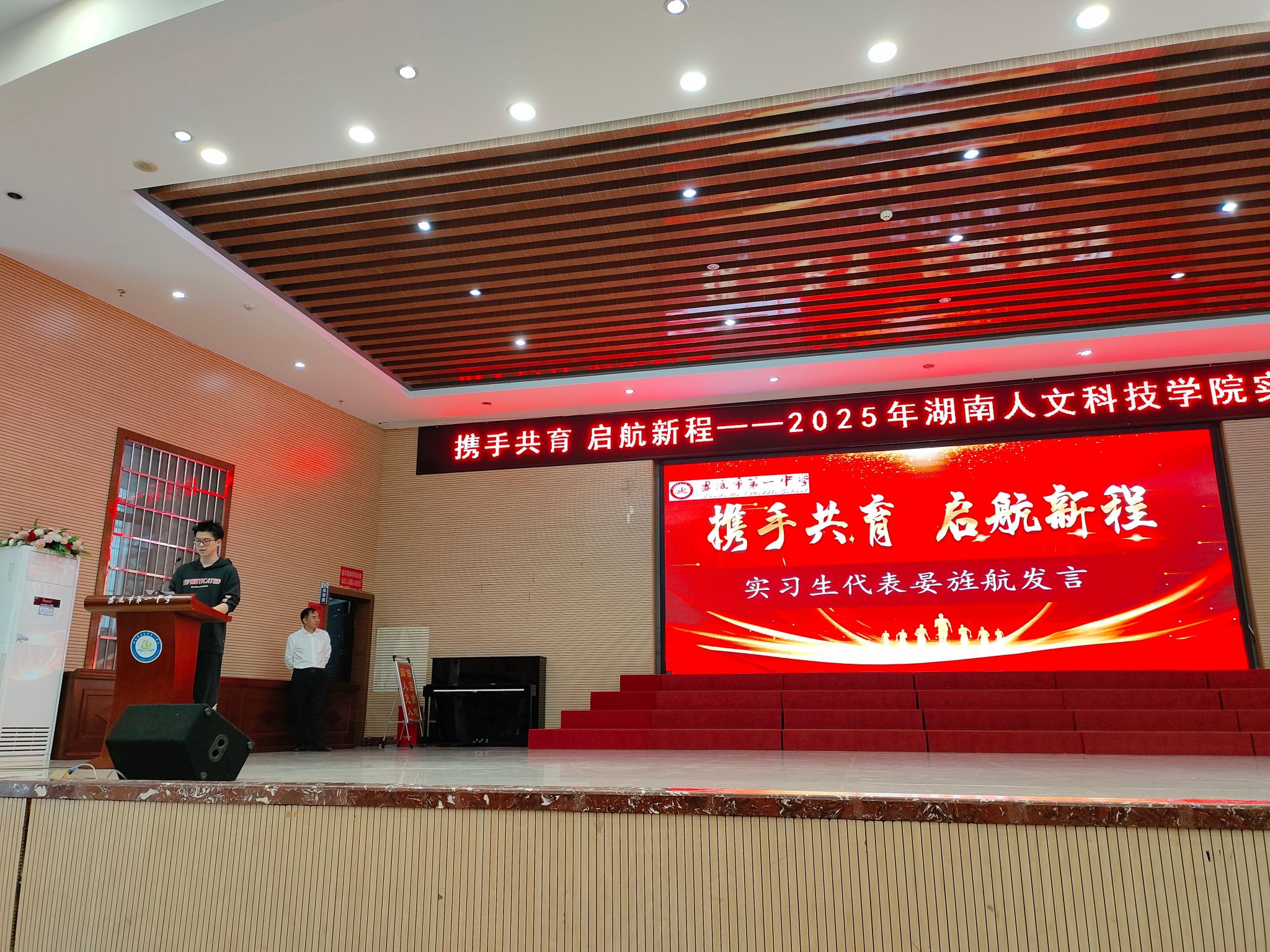 刘浩代表44118太阳成城集团教务处向娄底一中对太阳成官网实习工作的大力支持表示感谢,要求各专业实习生迅速转变角色、适应实习工作,要恪守职责、全身心投入实习工作、敬业爱生,要努力做青少年学生成长的引路人。要求太阳成官网各带队指导教师加强对实习生的全程指导和管理,恳请娄底一中的指导老师对实习生严管厚爱。