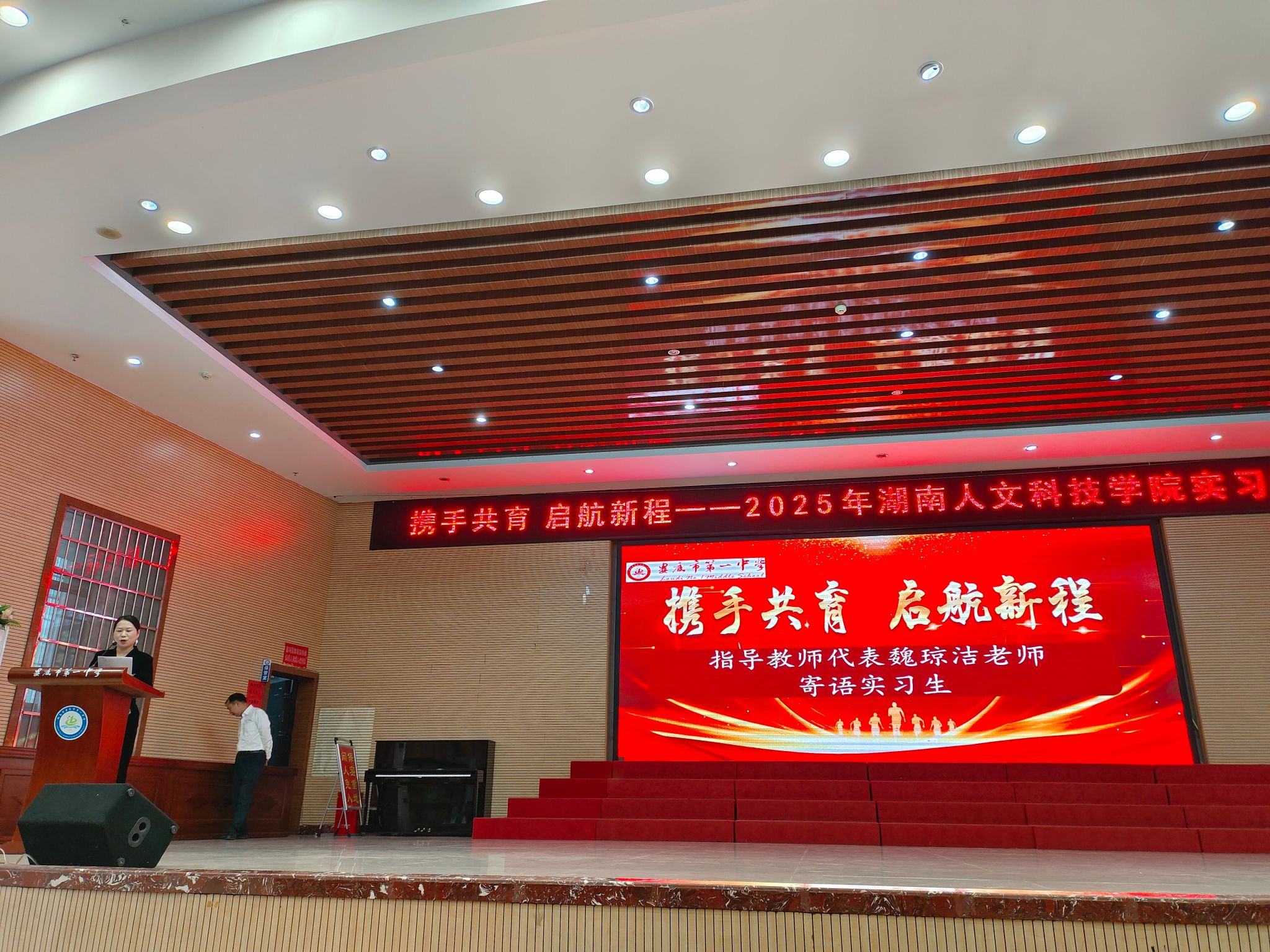 成英姿代表娄底一中向与会的领导老师和实习生表示热烈欢迎,以“怀揣7颗心,争当教育家”为主题,严肃而充满激情地为大家分享了对教育实习工作重要性的理解,要求各位实习生牢记立德树人神圣使命,从教师职责的基本要求做起,注意言行举止、仪容仪表、严守工作纪律、增强安全意识,努力以“行为世范、学高为师”的标准要求自己,怀揣“爱心、耐心、虚心、恒心、感恩心、责任心、进取心”,扎实做好实习工作,践行教育家精神,努力成为四有好老师、教育家型的人民教师。