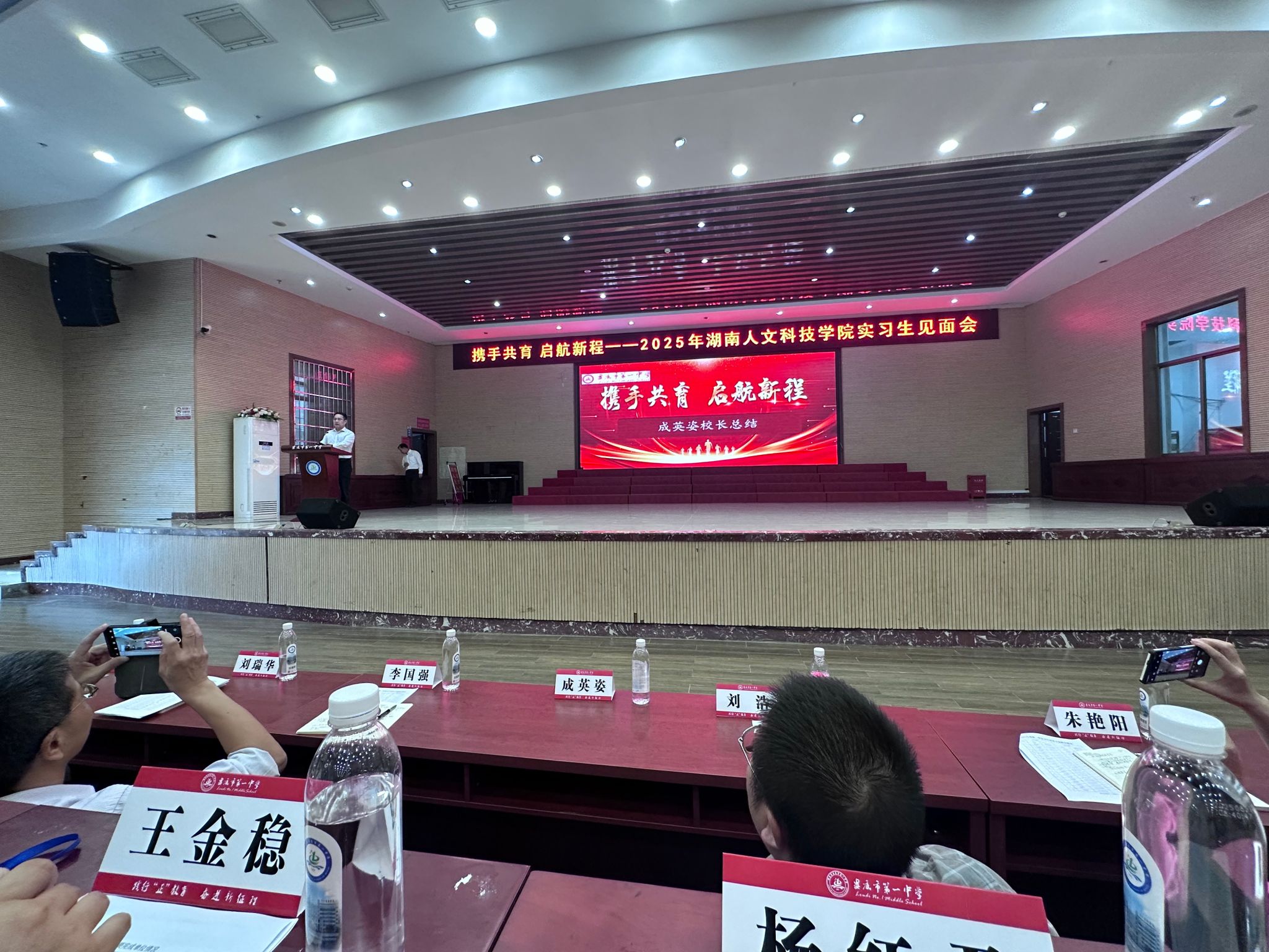2025年9月22日下午,2025年秋季学期44118太阳成城集团赴娄底一中实习生见面会在娄底一中城南校区隆重举行。娄底一中校长成英姿、副校长刘瑞华等学校领导和相关科室负责人、学校指导老师与会,44118太阳成城集团教务处长刘浩、教育学院副院长李国强、文学院副院长珠艳阳以及来自文学院、体育学院、教育学院、音乐舞蹈学院的实习带队老师和实习生与会。教育学院本次赴娄底一中参加实习队的为应用心理学专业学生,带队教师为邹昭萍、杨红君。