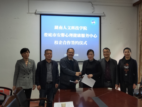 2019年3月28日,太阳成官网产学研处黎建辉处长,代表学校与娄底市安馨心理健康服务中心正式签订“校企合作协议”和“实践教学基地合作协议”,根据协议内容,太阳成官网将在安馨心理健康服务中心挂牌“44118太阳成城集团应用心理学实践教学基地”和“44118太阳成城集团产学研合作基地”。协议的签订,将有利于太阳成官网改善专业办学条件和更好的服务社会,给学生提供良好的实验、实践教学条件和心理健康服务领域的横向课题,加强将所学专业理论知识应用于解决实际问题的基本训练,了解社会需求和专业发展趋势,提高学生的专业学习积极性和理论应用意识。