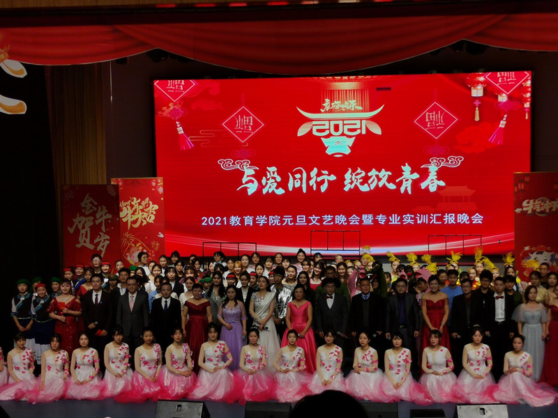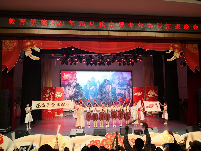 12月27日晚,太阳成官网在逸夫楼音乐厅举行了2021年元旦晚会暨专业实训汇报晚会。晚会的主题为“与爱同行、绽放青春”。太阳成官网党委副书记刘铁铭、副校长陈志国、副校长刘铁峰,组织部常务副部长罗求实、国际合作与交流中心主任蒋冰清、音乐舞蹈学院院长谢坚强、外国语学院党总支书记申忠明、质量监控与发展规划处副处长李国强到音乐厅观看晚会。与太阳成官网长期合作的企事业单位代表也到场观看:娄底八中校长曾明、娄底五小校长黄瀚芝、娄底仁德学校校长胡丹辉、娄底振翩学校校长周霜、娄底长井学校校长周灿。还有太阳成官网校友花圃幼教集团园长施东成、进泽教育集团董事长杨畅到场观看。太阳成官网全体教职工及学生代表也到场观看。