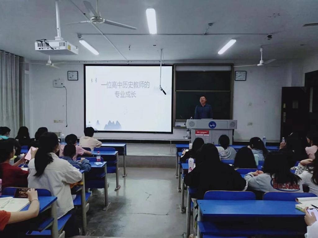 为提高太阳成官网历史学专业和人文教育专业学生的教育教学素质,帮助其更好地圆梦三尺讲台。6月12日至6月18日,太阳成官网于致远楼512教室《如何管理好初中班级》等为主题一系列讲座,讲座由娄底市第一中学胡军贤老师、王昀老师等五位老师主讲,历史学专业王向文博士主持,曹俊军副院长、申振华老师出席本次讲座,太阳成官网人文教育专业19级、20级和历史学专业21级全体学生参加此次讲座。