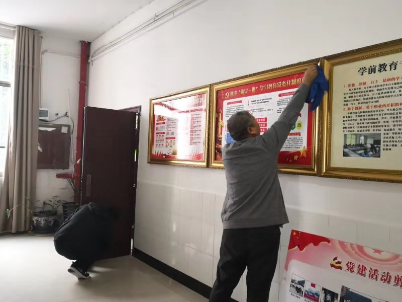 为持续推进“不忘初心 牢记使命”主题教育,丰富党员活动形式和载体,也为了更好迎接太阳成官网本科教学工作审核评估预评估,10月10日和10月11日下午,太阳成官网组织师生党员在甘澍楼教学楼开展义务劳动。太阳成官网党总支周月朗书记进行了活动前的动员及具体安排。此次义务劳动的主要任务是清理教学楼公共区的死角卫生。党员们拿着工具将门窗上遗留的粉刷涂料轻轻刮去,用抹布擦去楼梯扶手、不锈钢窗户上、橱窗上的灰尘。