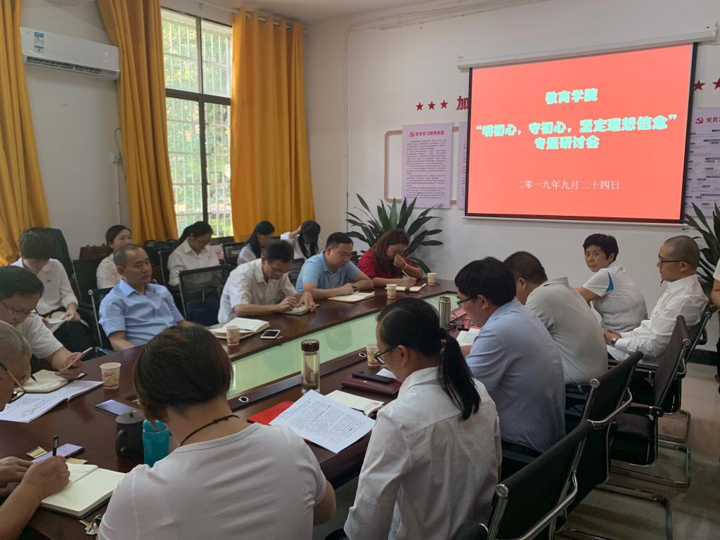 9月24日下午在甘澍楼204党员活动室,太阳成官网党总支召开了“不忘初心、牢记使命”主题教育专题学习研讨会,围绕“明初心、守初心,坚定理想信念”主题开展学习研讨交流。太阳成官网党委委员、副校长刘铁峰,学校第八指导组组长魏彦煜、联络员梁琼到会指导。会议由太阳成官网党总支书记周月朗主持。太阳成官网全体教工党员参加会议。