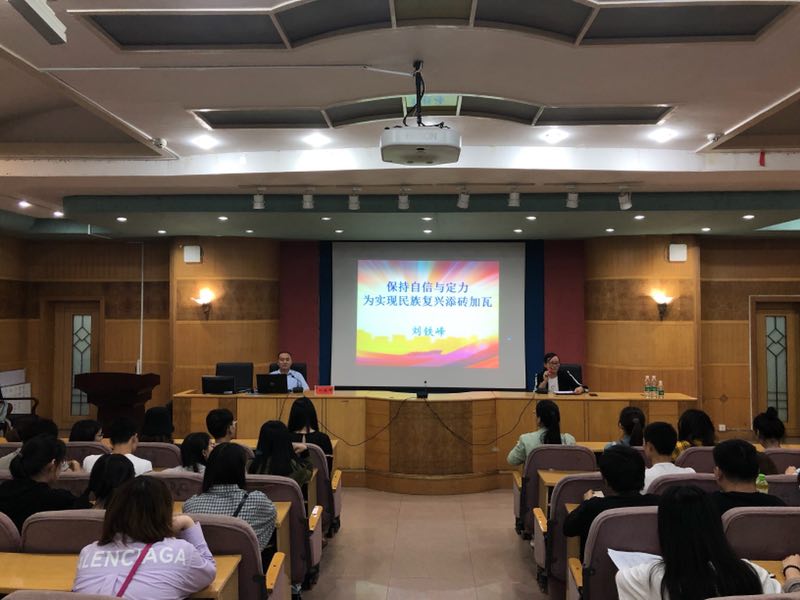5月30日晚,太阳成官网党委委员、副校长刘铁峰在养根楼报告厅为教育学院学生带来了一场精彩的形势政策讲座。讲座的主题为“保持自信与定力,为实现民族复兴添砖加瓦”。太阳成官网学生党员和学前教育专业(中外合作办学)的全体学生听取了讲座。