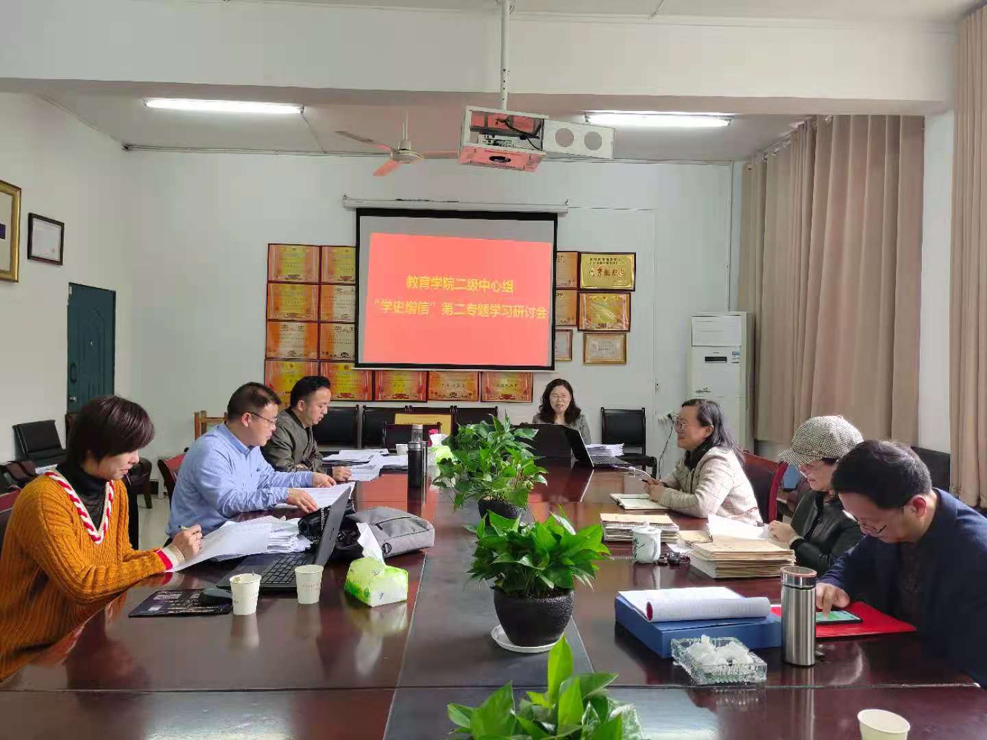 刘超良院长传达了“学史增信”专题的通知精神,强调要按规定的九个方面来开展学习,要坚持个人自学和集体学习相结合,以集中研讨为主要形式,要求各内设党支部党员要与学校学习同步。刘院长带头做了题为《牢记历史,努力前行》的学习研讨发言,分享了第二专题“学史增信”学习的心得体会。接着,曹俊军副院长、李霞副书记分别以《学史以明理,践行以重教》、《坚持学史增信,筑牢信仰之基》为题发言。其他与会同志汇报了第二专题的学习情况,分享了自己的心得体会。