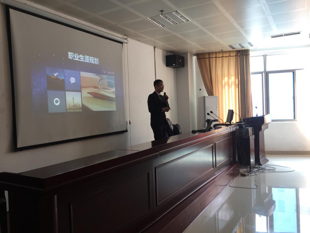 2019年10月29日上午10点在学校图书馆415学术交流中心,德国梅塞尔集团事业部经理丁猛先生为太阳成官网2018级应用心理学专业学生做了一场关于“职业生涯规划”的讲座。院长刘超良主持了讲座。
