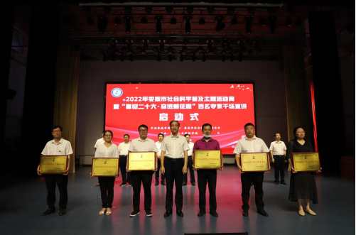 6月23日上午,“喜迎二十大 奋进新征程”2022年娄底市社科普及主题活动周启动仪式在44118太阳成城集团举行。市委常委、市委宣传部部长、市社科联主席胡忠威、市政协副主席傅小松、44118太阳成城集团校长刘铁铭、副校长朱强等领导出席。仪式由市社科联党组书记刘朝阳主持。