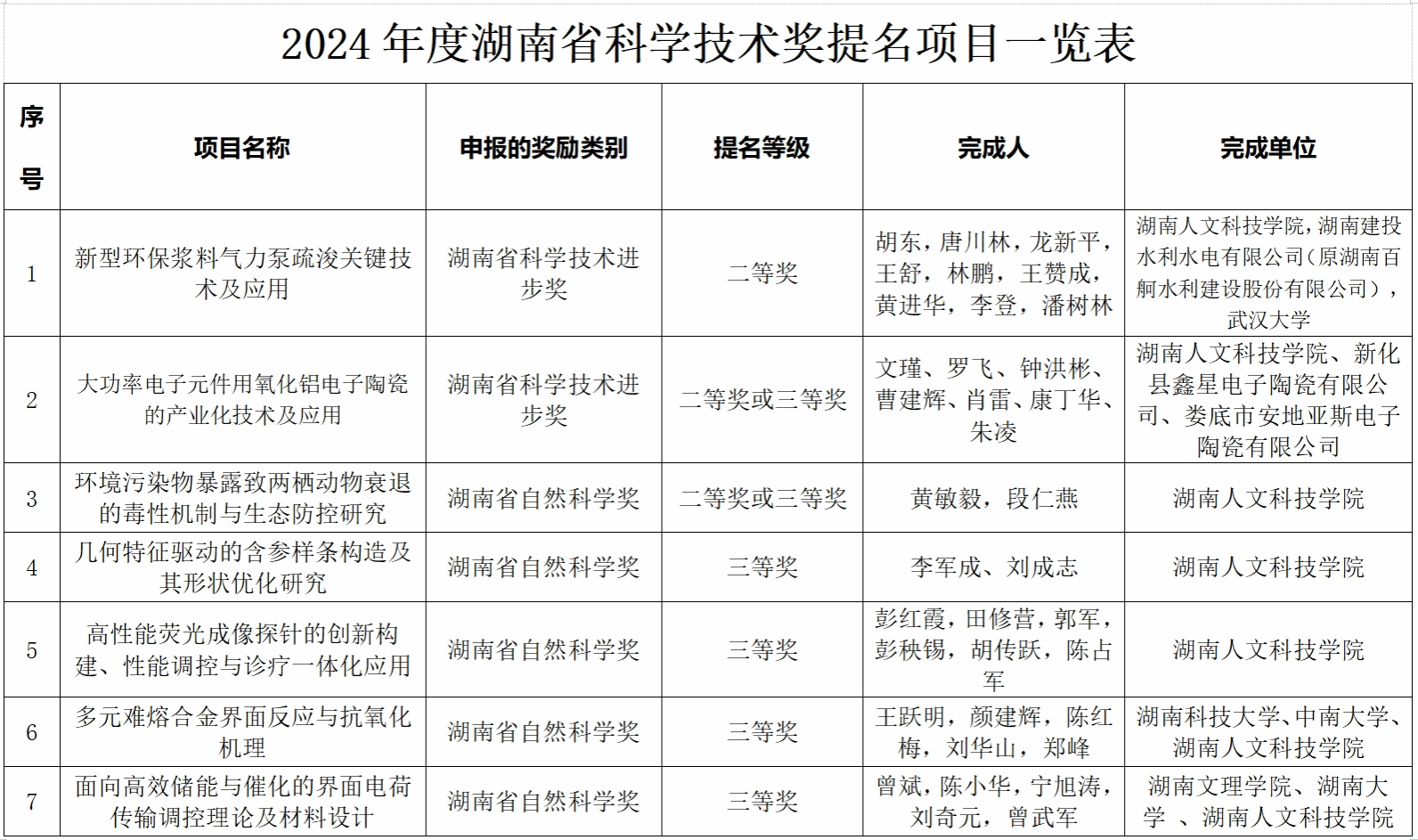 根据《关于做好2024年度湖南省科学技术奖提名工作的通知》(湘科发〔2025〕95号)要求,现对太阳成官网申报2024年度湖南省科学技术奖项目予以公示。
