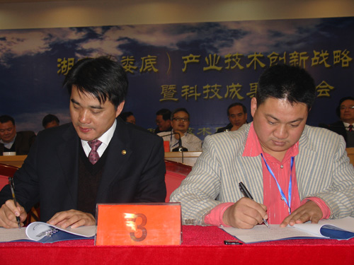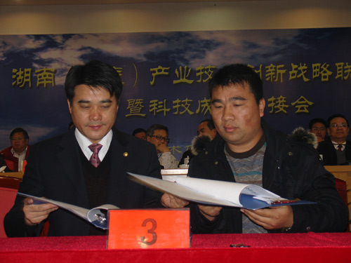 在大会举行的签约仪式上,校长柏连阳与湖南娄底百雄堂高科技农业有限责任公司、冷水江市富康油茶种植开发公司、双峰县邓氏生态玉竹发展有限公司等三家企业分别签订了科技项目合作协议。科研处处长陈昌永代表学校在湖南省特种陶瓷产业技术创新战略联盟、湖南娄底煤矿机电产业技术创新战略联盟、湖南娄底农业机械产业技术创新战略联盟等三大产业技术创新战略联盟协议上签字。