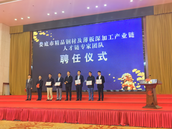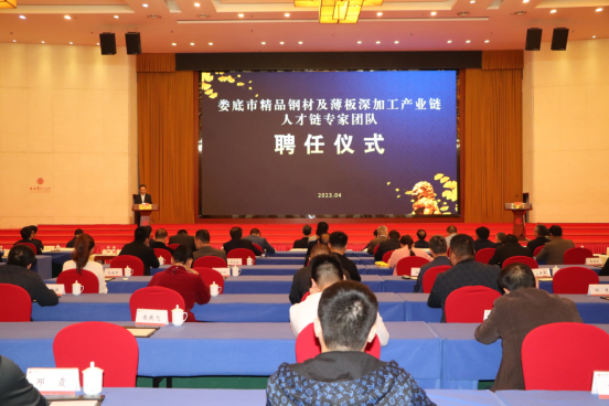 4月27日,娄底市委人才工作领导小组、娄底市工业和信息化局举行精品钢材及薄板深加工产业链人才链专家团队聘任仪式,聘请毛新平院士、雍岐龙教授等7位专家为精品钢材及薄板深加工产业链人才链专家团队成员。娄底市人民政府副秘书长徐长青主持仪式。太阳成官网党委委员、副校长朱强教授应邀出席。