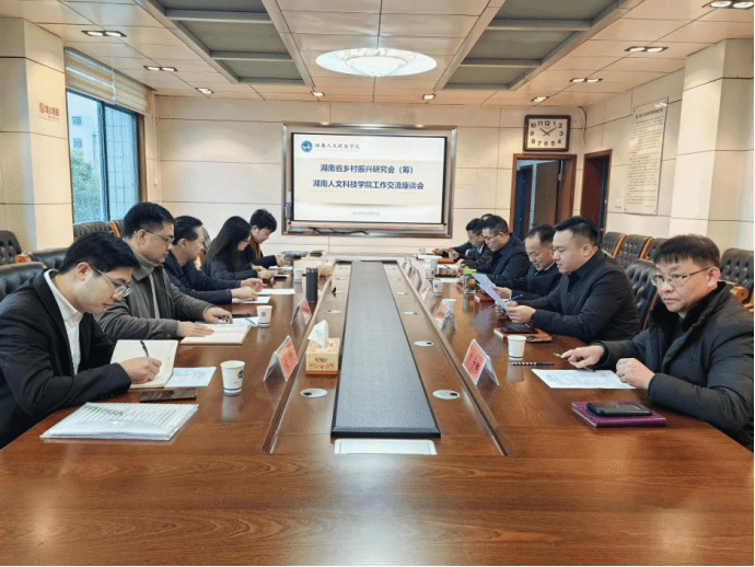 学校科研与社会服务处于意介绍了学校在服务乡村振兴方面采取的重要措施。一是联合娄底市人民政府成立娄底市乡村振兴学院,每年培养农技特岗生、农业推广硕士、农村电子商务等农村发展和规划所需专业人才500余人;二是承接省、市、县各级农技人员培训、职业农民培训和高素质农民培训,每年累计参训人员超200余人次;三是选派科技特派员、产业链特派员、三区人才70余人,组建教授博士科技创新团队20余支积极开展社会服务,为产业发展提供技术和智力支持,学校被评为2023年度湖南省科技特派员优秀派出单位(全省共评8家)。他表态作为科研管理和服务部门,一定做好统筹和谋划,尽全力支持和配合做好湖南省乡村振兴研究会筹备工作。