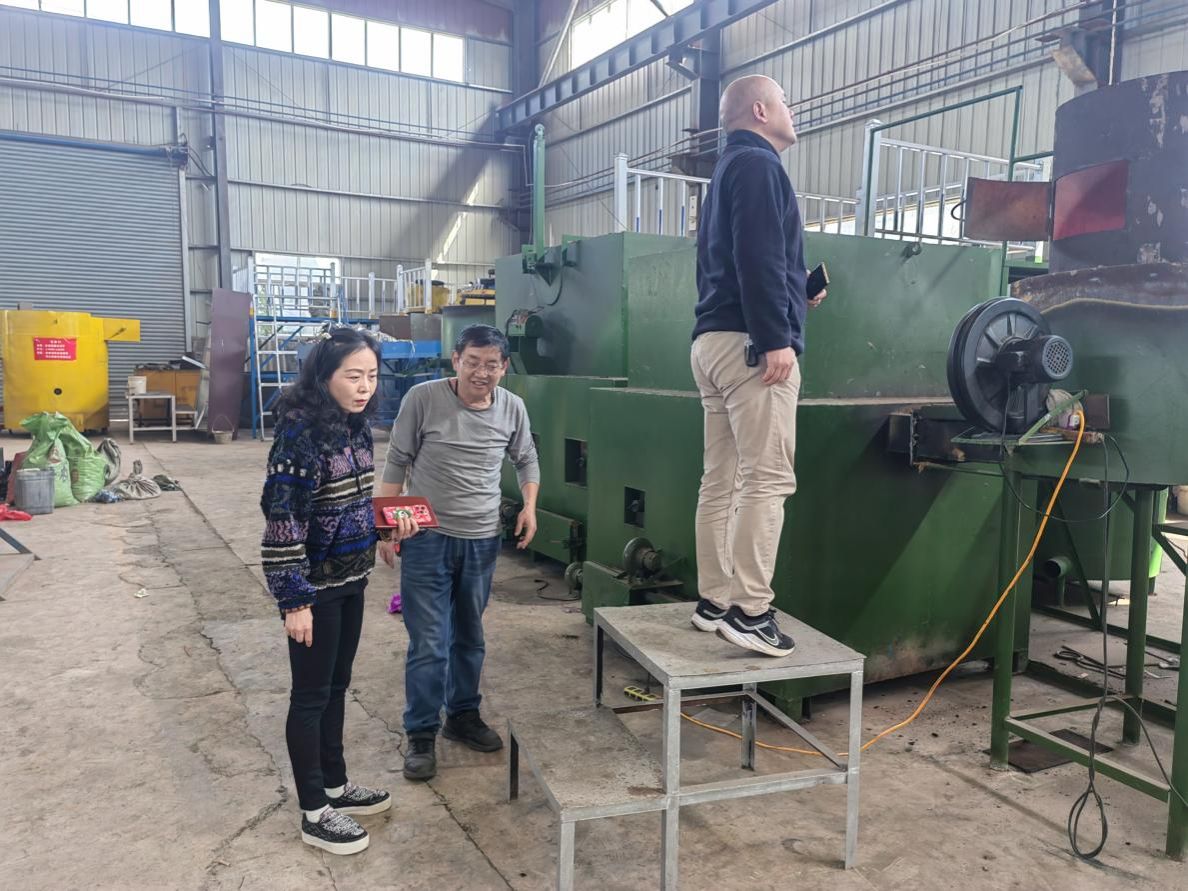 随后,校企双方观摩了小型垃圾热解炉配套旋转烘干筒效果、大型热解焚化炉效果、垃圾气化炉配套大型裂解炭化成套装备,工作人员现场展示了给料、启动、气化裂解过程,全面呈现了垃圾气化裂解的各个环节,如垃圾气化、裂解以及热能利用等。整个过程做到无污水、无焦油、无黑烟、无异味排放,充分彰显了该技术的环保性和高效性。