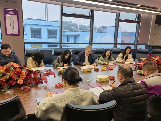 上午,一行人前往湖南邬辣妈农业科技有限公司进行调研,邬文明董事长对专家团队的到来表示热烈欢迎,并详细介绍了公司的发展历程、既定目标及市场前景。科研与社会服务处副处长陈瑶介绍了与会专家的基本情况及此行的目的。马连科教授分享了多年来从事科研的基本情况及取得的科研成果。双方就未来的合作方向进行了细致分析与深入探讨,达成进一步的合作共识。随后,在工作人员的陪同下,专家团队还深入生产一线,进行实地考察。
