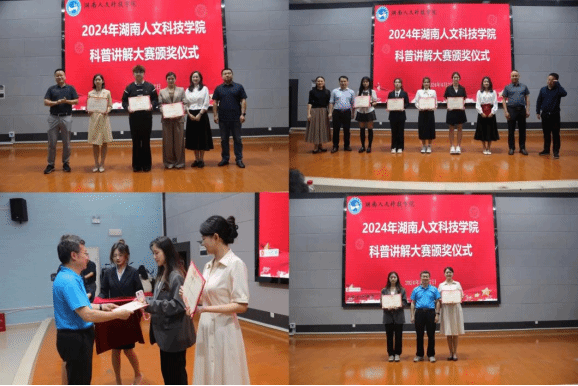 经过激烈角逐,共评出一等奖2名,二等奖3名,三等奖5名。评委们现场为获奖的选手颁奖。表现优秀的选手将代表学校参加2024年娄底市科普讲解大赛。
