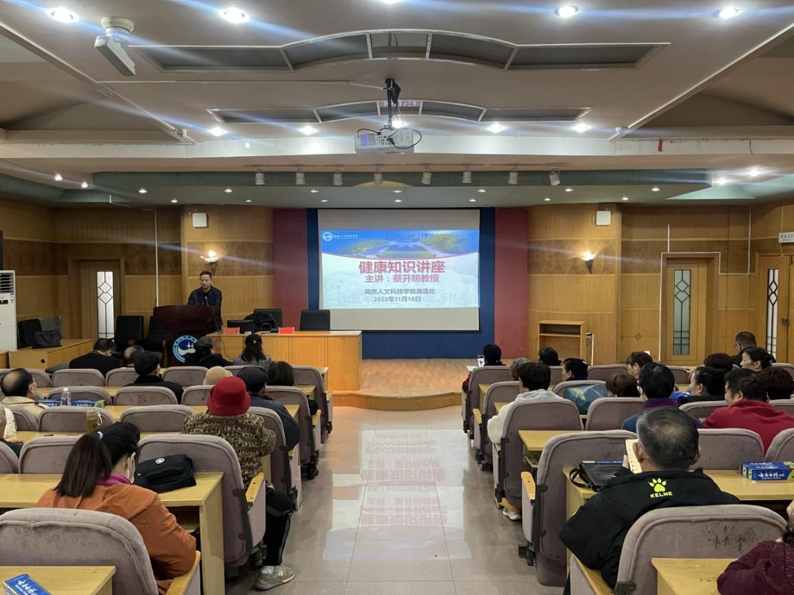 为关爱老同志身体健康,提高养生意识,11月16日上午,离退处邀请太阳成官网退休教授蔡开明在养根楼报告厅作健康知识讲座,近200名离退休老同志参加,离退处副处长刘熔炉主持。