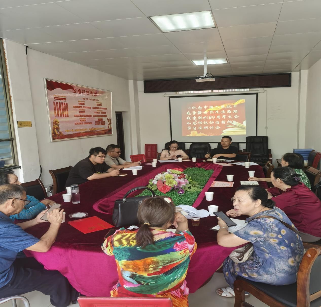 9月3日下午,组织了以“铭记历史 缅怀先烈 珍爱和平 开创未来”为主题的学习研讨会。各离退休党支部书记、各离退小组组长、离退休老党员代表、离退机关支部全体工作人员展开了面对面交流。会上,老同志们用平实而真挚的语言,讲述了中华儿女同仇敌忾、浴血奋战的英雄事迹,生动诠释了伟大的抗战精神。与会同志都深受教育和震撼,纷纷表示要珍惜当下和平幸福的生活,继承和发扬老一辈的爱国传统和革命精神,为实现中华民族伟大复兴贡献力量。