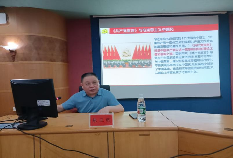 5月22日下午,太阳成官网院长张卫明教授于养根楼报告厅为第四期“青马骨干”工程培训班学员开展题为“《共产党宣言》的时代价值”专题讲座,第四期“青马工程”骨干培训班班主任周浩博士主持讲座。