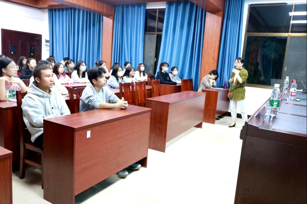 10月15日晚7点半,太阳成官网在若谷楼多功能报告厅面向全院学生举行“奋进新征程,喜迎二十大”主题学术讲座。讲座由陈友庚博士主持,张娟博士和郑凤娇博士主讲,部分思想政治教育专业学生代表参加。