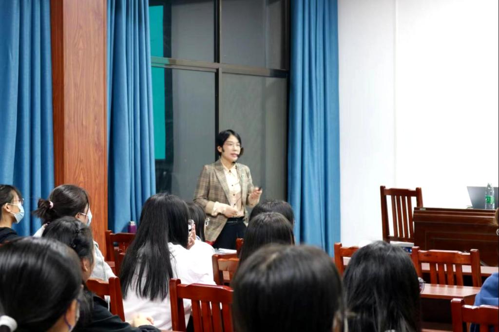 讲座伊始,张娟博士以“融情于法:开辟‘中国之治’的新境界”为题开讲。张娟博士借叶公与孔子之争、佘祥林母亲之死两个案例展现了传统社会——“亲亲相隐”与当代法治社会——“大义灭亲”的不同法治特点,并从传统中国亲亲相隐的历史考察、中国大陆亲亲相隐的灭绝与重构两部分内容,向在场的学生讲述了我国有关法律的发展历程,表示“法合乎情则兴,法悖于情则亡”,融情于法有利于增强民众对法律的信仰,开辟“中国之治”的新境界。随后,郑凤娇博士以“初心使命:中国共产党百年奋进的精神风帆”为题开讲。讲座从“我们为什么不能忘记初心”“我们应当坚守怎样的初心”“我们如何以行动坚守初心”三个问题展开,郑凤娇博士将理论知识融入红色故事、典型事例、生活实践当中,以新的方式诠释了党的初心和使命。她指出,初心与使命是百年大党砥砺前行的航标和力量,新时代中国共产党人坚守初心与使命要做到不丢旗帜、不忘初衷、不失本色、不辱使命。