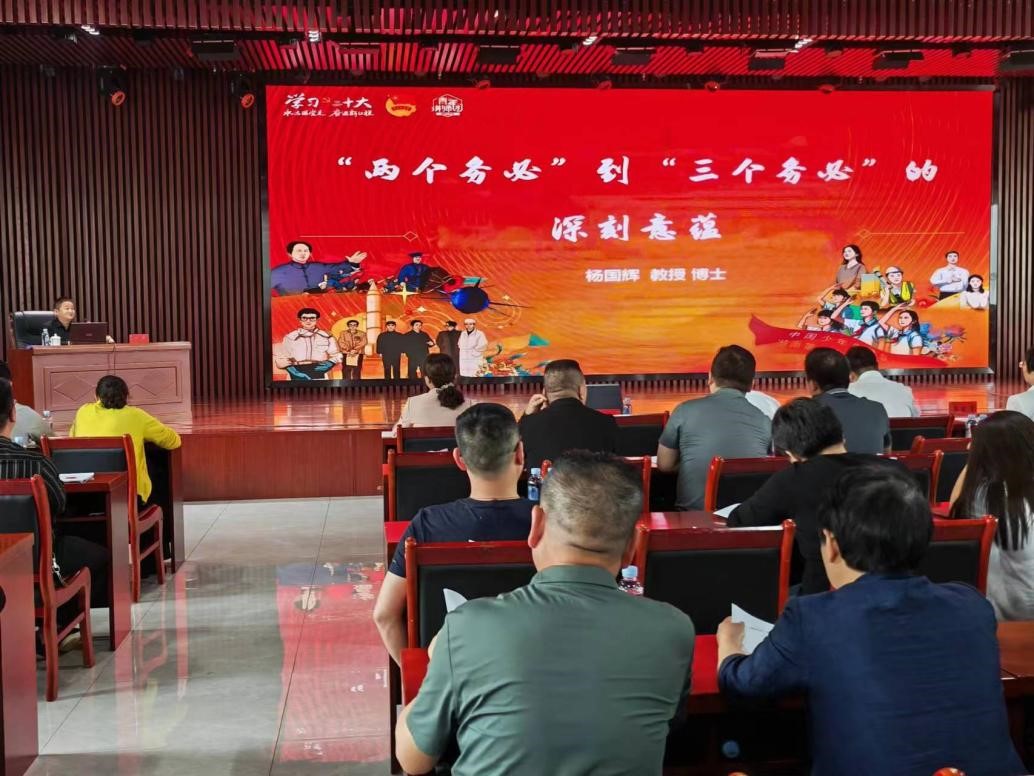 杨国辉教授以《“两个务必”到“三个务必”的深刻意蕴》为题进行授课。课程共分为三个部分:“两个务必”是党在赶考路上的宣言书;“三个务必”是党在新赶考路上的动员令;“三个务必”是凝聚全党团结奋斗的总要求。他首先指出“两个务必”的提出是“历史主动”和“历史自觉”的最好体现,它不仅是对农民战争失败的深刻认识,还是我党对过去经验教训的科学总结以及对历史周期律的警觉和自为。紧接着,杨国辉从新时代社会存在的主要问题出发,深入浅出地分析了“三个务必”实行的必要性和现实意义,剖析了勇于斗争、善于斗争的伟大意义和现实价值。以此为基础,杨国辉详细讲述了坚持“三个务必”的方法:一是把握内涵实质,讲学习;二是树立“两个确立”意识,讲政治;三是聚焦民生工程,讲实干;四是突出质量发展,讲斗争。授课结束后,杨国辉教授与颜新和副主任就现阶段青年干部中存在的问题进行了深入地探讨。